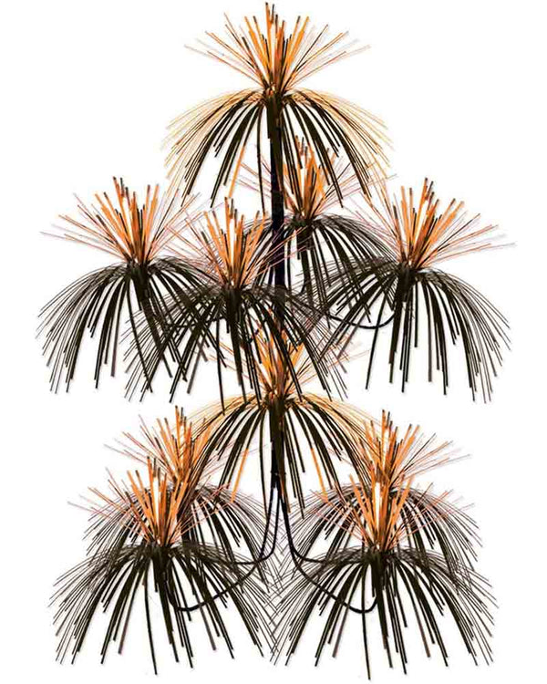 Compliment your Halloween decorations with this gorgeous Orange and Black Fireworks Chandelier! This chandelier features thin orange and black streamers that shoot out and cascade down like fireworks. Perfect for adding an element of elegance to your celebrations!