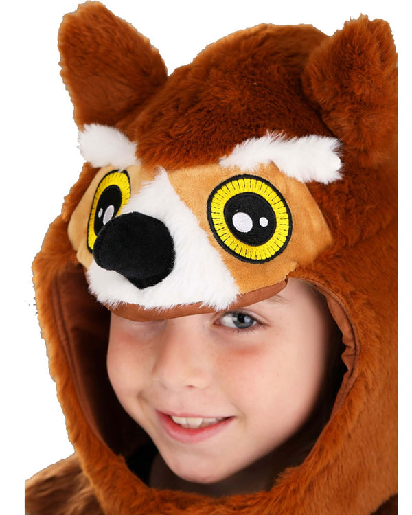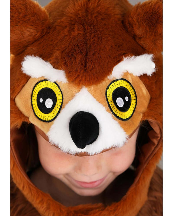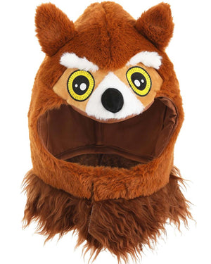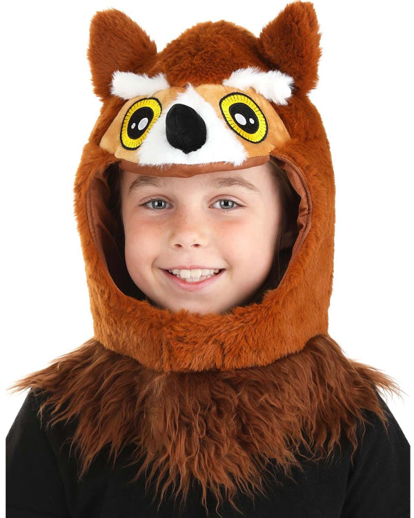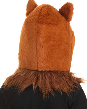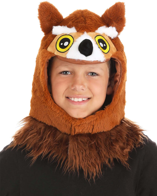 You'll love our wearing our Owl Hood. Featuring a plush brown owl hood with a black beak, piercing yellow and black eyes, and a brown furry mane.