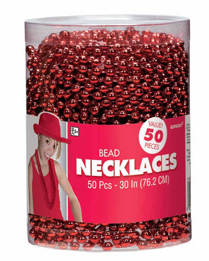 Whether you're jazzing up your flapper costume or supporting your team, these Red Beaded Necklaces are a must. This barrel includes 50 sets of beads, each 30" / 76.2 cm long. Pass them out to friend's or layer up!