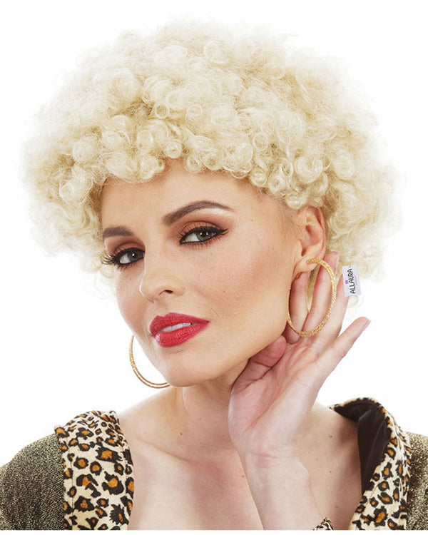Get your groove on with this Party Afro Blonde Wig. Great wig for both women and men. Just add some groovy shades and bling to complete the look! Wear a wig cap for extra comfort and to keep your own hair under control.