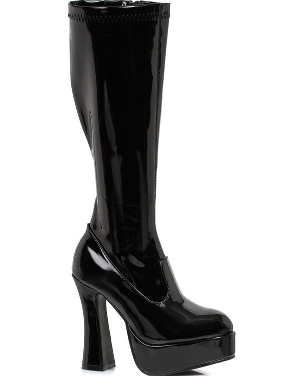 Give your costume the finishing touch it needs with these gorgeous Gloss Black Patent Platform Go Go Womens Boots. These five inch heel platform boots come in a shiny black patent finish and features a zipper up the side. A great versatile accessory for a large number of costumes, including superheroes, sexy costumes, ninjas and more!