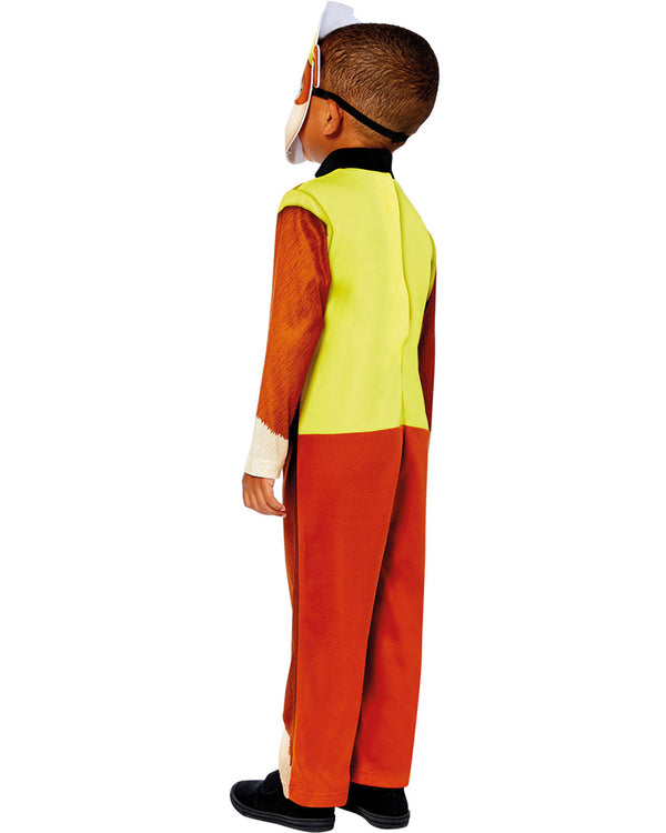 Your little one can be Rubble on the double in this Paw Patrol Rubble Value Boys Costume. The costume features an orange fur printed jumpsuit with yellow printed vest featuring faux pockets with tools, zipper and brown belt, as well as velcro closure at the rear. Also included is a full face Rubble mask with eye cutouts, yellow hat detail and elastic strap at the back.