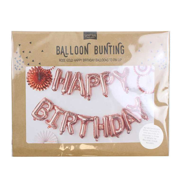 Pick & Mix Rose Gold Balloon Bunting Happy Birthday Rose Gold