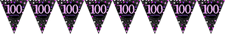 Pink Celebration 100 Prismatic Pennant Banner - Plastic
