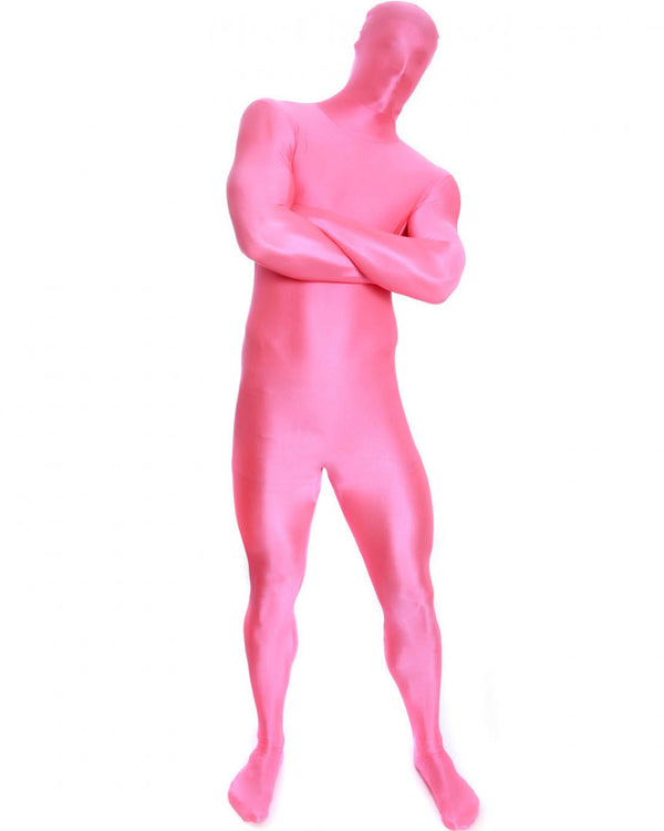 Morphsuits are the one-piece Spandex jumpsuit that transforms you into a coloured silhouette! Transform yourself in this Pink Adult Morphsuit. The suit has a rear zip from the lower back to the top of the head, and the thin fabric stretches enough that you can actually see and drink through it! Great for bucks, matches, or the basis of any costume idea!