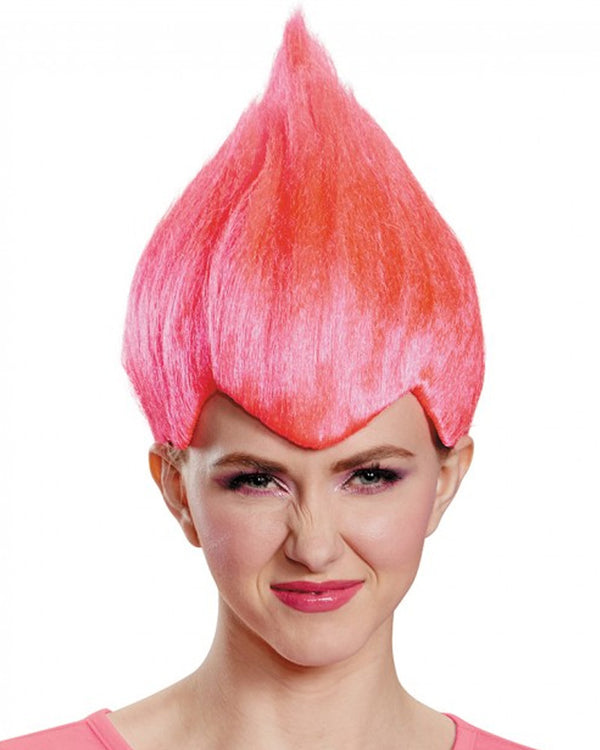 Get ready to sing, dance and hug all day, every day with this Pink Troll Adult Wig. Perfect for completing your Trolls costume whether you're taking inspiration from the Trolls film from 2016, or you're a 90's kid at heart reminiscing on the toys of your youth. The wig features a v hairline with hair that stands upwards and slicks up into a point, just like a troll doll! For a fun group costume idea, grab these in all the Troll colours! Wear a wig cap for added comfort and to keep your own hair under wraps.