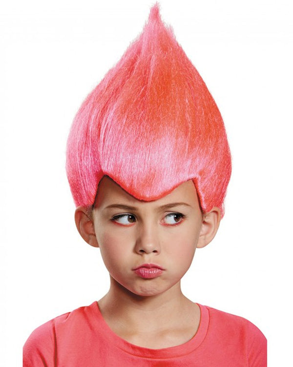 Get ready to sing, dance and hug all day, every day with this Pink Troll Kids Wig. Perfect for your kids to complete their Trolls costume whether they are inspired by the Trolls film from 2016, or they're a 90's kid at heart reminiscing on the toys of their youth. The wig features a v hairline with hair that stands upwards and slicks up into a point, just like a troll doll! For a fun group costume idea, grab these in all the Troll colours! Wear a wig cap for added comfort and to keep your own hair under wraps.