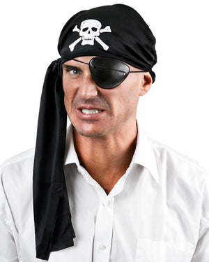 Get ready to sail the seven seas with this Pirate Bandana and Eyepatch Kit. This kit comes with a black bandana with a printed white skull and crossbones and a matching black eye patch with a skull and crossbones imprint.