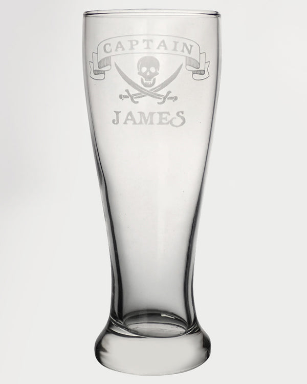 Pirate Skull and Crossbones Personalised Engraved 425ml Beer Glass