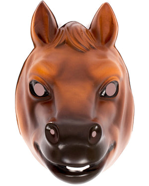 This Plastic Horse Half Face Mask with elastic head strap is easy to wear and has nose, eye and mouth holes. An inexpensive mask made from thin plastic. Great for kids or adults. Giddy Up!