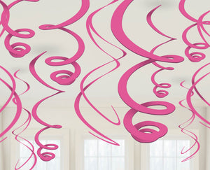 Bright Pink Hanging Swirl Decorations Pack of 12