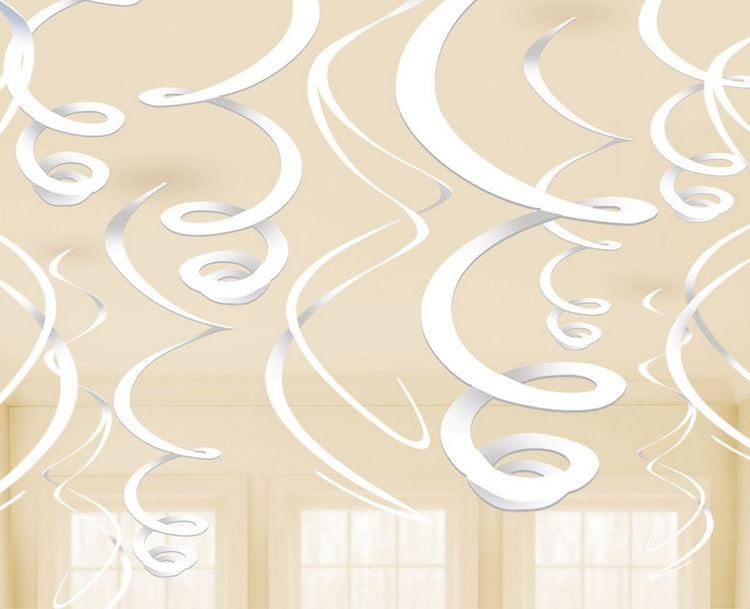 Frosty White Plastic Hanging Swirl Decorations Pack of 12