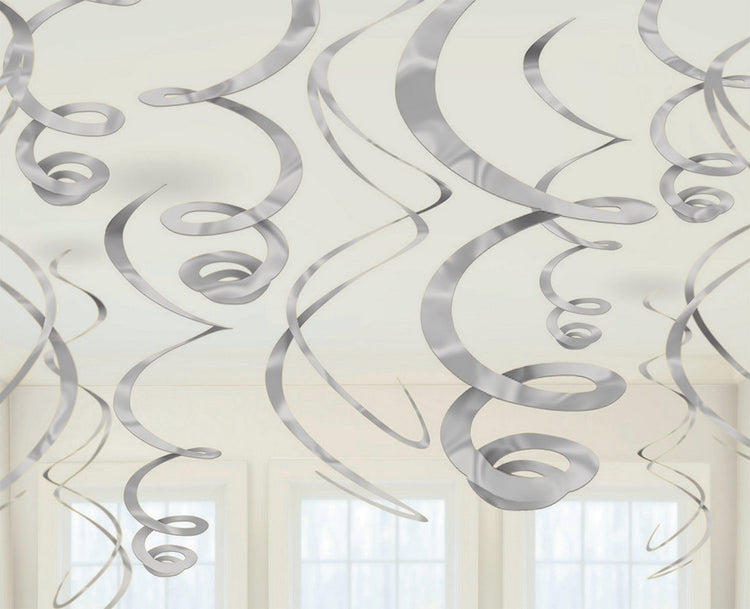 This Silver Plastic Hanging Swirl Decorations Pack of 12 are perfect for giving your party the whimsical and glamorous feel. Great for adding to your other party decorations or on their own, these hanging swirls come in a metallic silver and feature attached hooks so you can easily hang them along the ceiling. No matter what theme your party is these swirls are a sure to do the trick. Combine with our range of Silver party supplies including party cups, party plates, tablecovers and more.