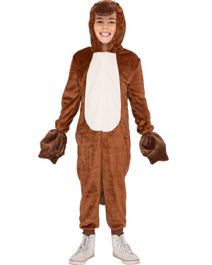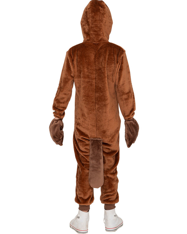Make a splash at your next fancy dress event, whether it is for Book Week or a party event in this Playful Platypus Deluxe Kids Costume. This super comfy costume comes in a jumpsuit for a quick and easy costume choice and features elastic around the cuffs and ankles for a comfy fit. The jumpsuit comes in a fluffy chocolate brown with a cream coloured chest and a zipper down the front for an easy fitting. The hood is fitted around the head and features a dark brown soft bill with a pair of black beady eyes at the top. Around the back there is a dark brown soft tail and to finish the platypus look is a pair of soft dark webbed shaped gloves.
