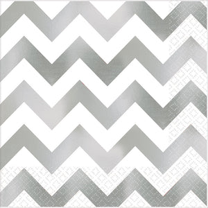 Christmas Premium Chevron Silver Hot-Stamped Lunch Napkins Pack of 16
