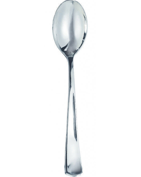 Fill up your party cutlery with our Premium Silver Spoons Pack of 32. Made from durable, hard plastic, this spoon is perfect for any occasion and best of can be handwashed or disposed of easily! Combine with our range of premium Silver party supplies including party cups, party plates, tablecovers and more.