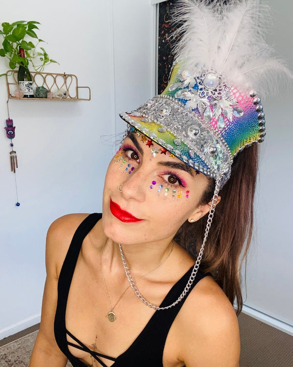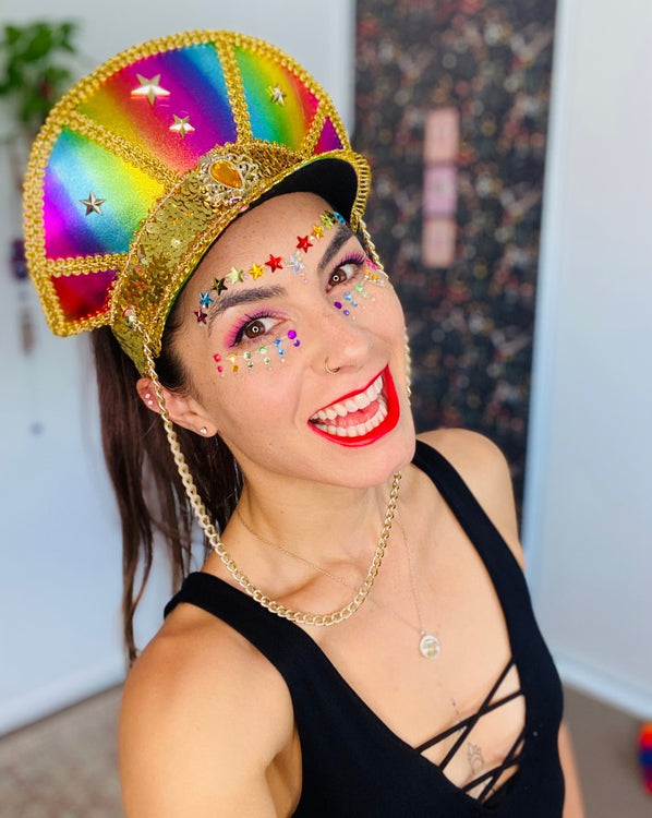 Be ready to attend the biggest party in Sydney wearing our Pride 3 Face Jewels. This accessory features a pack of rainbow star and oval-shaped face gems with self-adhesive and each gem is attached to clear film to easily apply around your face. For multiple uses just add eyelash glue or spirit gum to keep them stuck! The accessory is fantastic for adding some colour to your outfit. Ready for Mardi Gras.