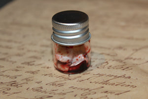 This Pulled Out Bloody Teeth Specimen Jar Prop has multiple uses. Featuring a glass specimen jar with three resin teeth and fake liquid blood, it can be placed next to apothecary vials and other antique jars for decorative purposes. Or it can be used for Halloween decor, vintage photography, films or medical displays. It can be an oddity or macabre gift to someone too.