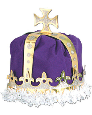 Show everynoe who's King of the Castle in this awesome Purple Kings Crown! This crown features purple velvet textured velour and is trimmed with board stock and tissue fringe. The perfect accessory to complete your kings costume!