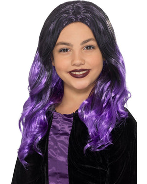 Purple Witch Long Black and Purple Kids Wig