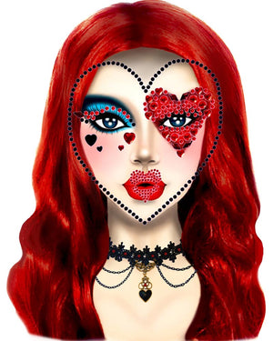 Give your makeup the royal treatment with this Queen Adhesive Face Jewels Sticker. The set is perfect for completing your queen costume makeup and adding sparkle to your outfit. The face jewels are self-adhesive and super easy to apply, just make sure your face and body are clean and dry, and then peel the face jewels off and stick them on your face or body as per the design pattern (apply makeup after you apply jewels for the best result). These face jewels come in a black and red design and all with hearts included.
