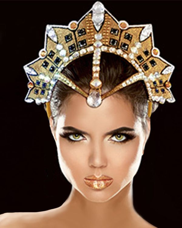 Rule the land with this dazzling Queen Of The Night Crown. This gold crown is pointed with silver and black rhinestone detail that stretches from the forehead to the back of the head with a large silver rhinestone at the centre. One might even mistake you for the Queen of the dammned, but vampires dont exist....right?