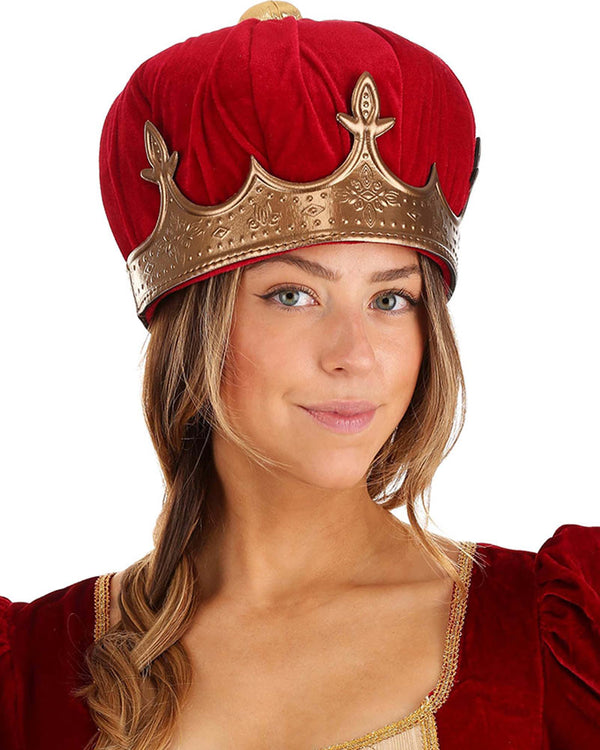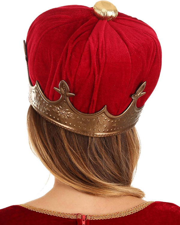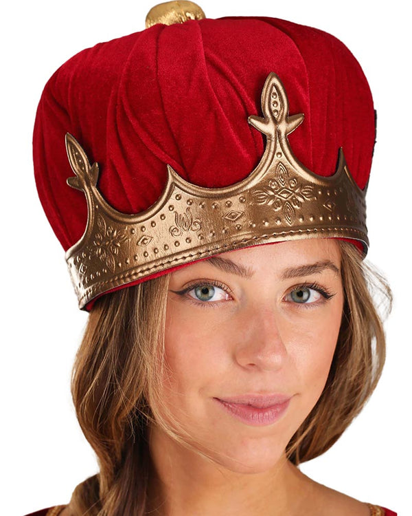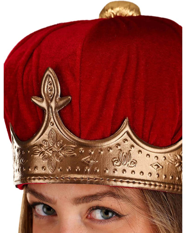 All shall bow down to you, the Queen when you wear this Queen Plush Deluxe Crown and take first place at your fancy dress party. It's all about the accessories, of course! The gold crown is made from a lightweight velour fabric with filigree patterns throughout and features a crimson red plush centre that's topped with a gold squatchee. Perfect for Victorian parties, historical themes, plays, king's and queen's parties and even Book Week events.