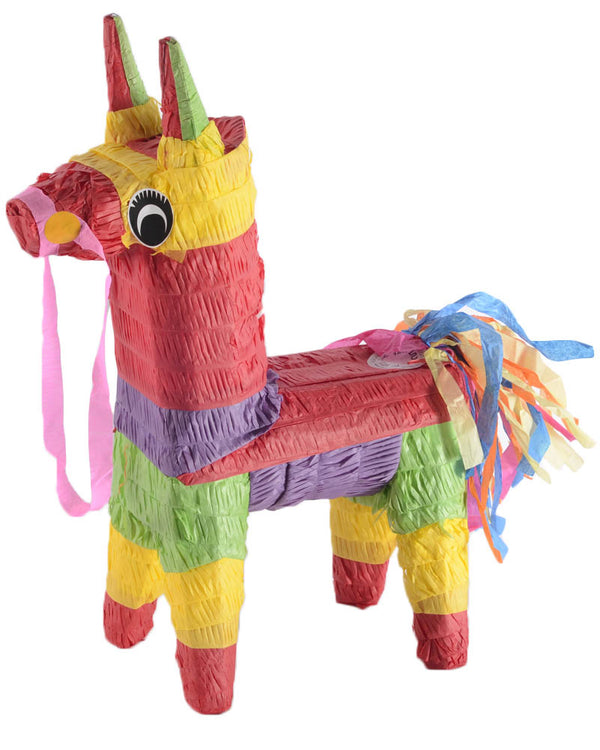 Have some fun at your mexican fiesta with this colourful Rainbow Donkey Pinata. This colorful pinata is shaped like a traditional Mexican donkey in rainbow stripes.