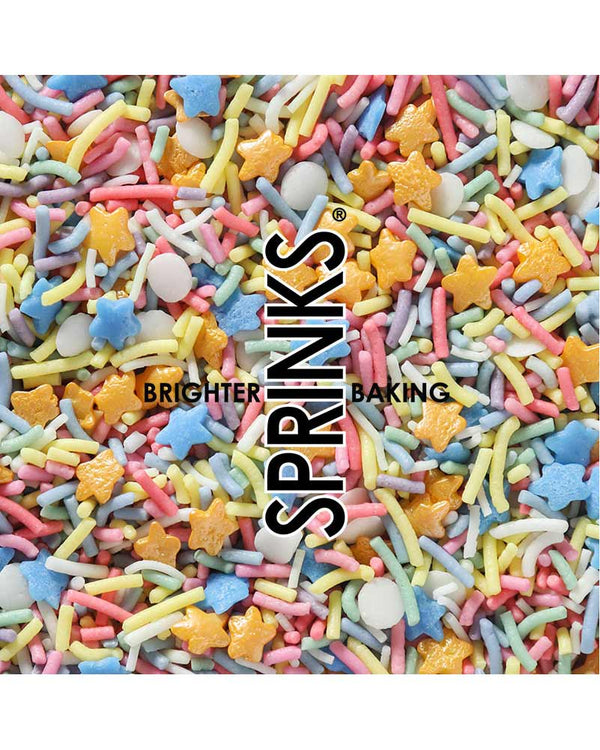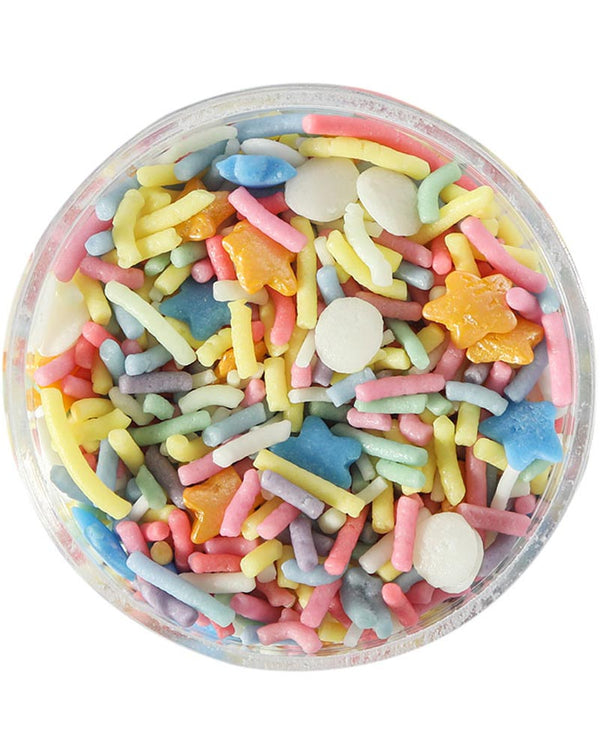Time to get baking with these delicious SPRINKS Rainbow Riot Sprinkles 500g. The packet contains sprinkles in shapes of stars, tubes and circles in all colours of the rainbow and would be great for decorating cakes and cupcakes.