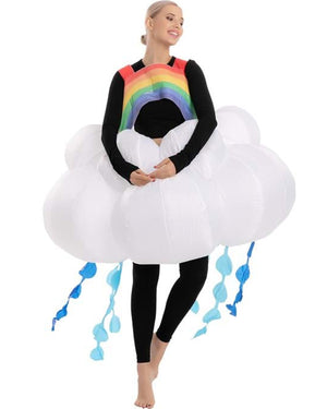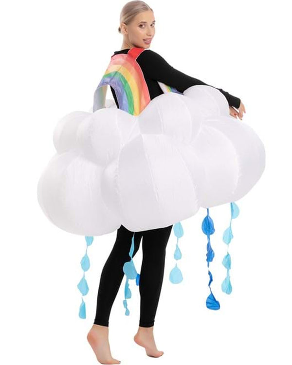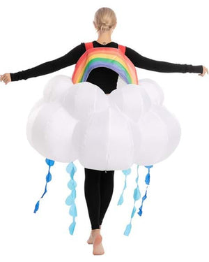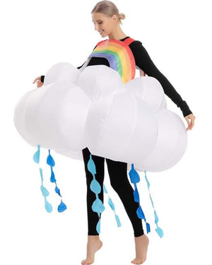 - Inflatable cloud tutu costume with rainbow top and attached rain drops.