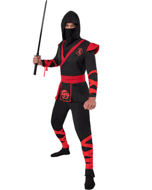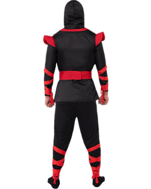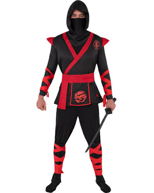 Embrace the art of stealth with this Red and Black Ninja Mens Costume. Designed for men who are ready to step into the shadows and become mysterious warriors, this costume is a perfect fit. The matching black ninja top and pants feature attached red strap detail and red trimming, creating a striking ninja look that's ready for business. The black hood and face mask complete the transformation, allowing you to become an enigmatic force of nature.