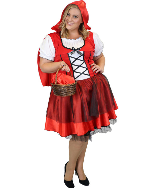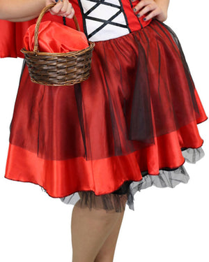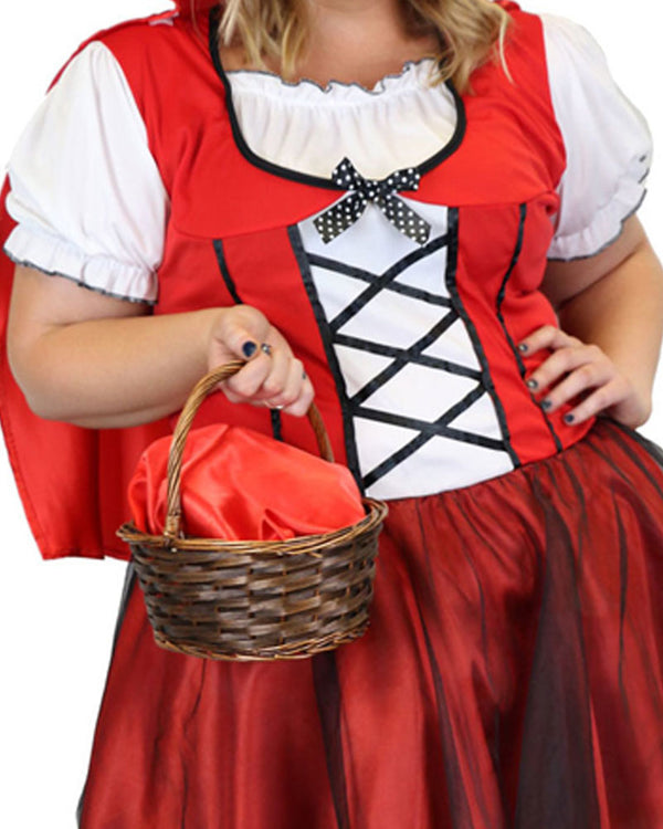 Visit granny in the centre of the woods this Book Week in this Red Hood Sweetie Womens Plus Size Costume! Perfect for skipping through the forest with your basket of treats for granny, this costume is a red dress featuring a white mock shirt with puffed short sleeves and a red bodice with a printed lace-up corset. The skirt of the dress is a red satin with a shorter black tulle overlay, as well as a black tulle under layer. You can even grab one of our petticoats to increase the fullness of the skirt too! Also included with the costume is a short red satin hooded cape. Perfect for Book Week or any fairytale theme party, you sure don't want to miss out on this costume!