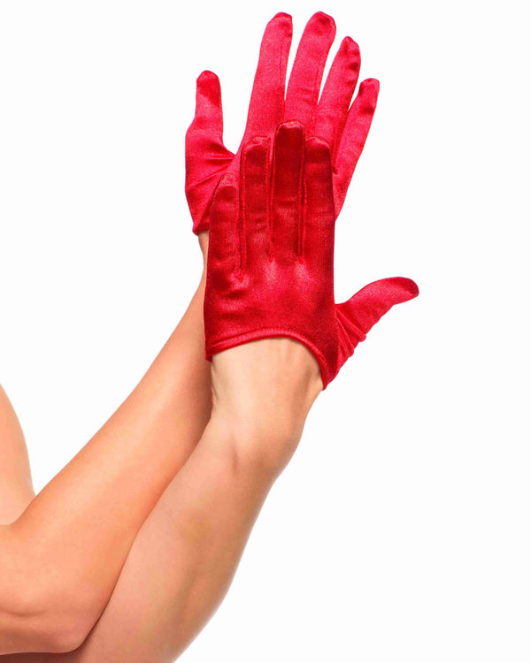 Mini Cropped Red Satin Gloves will complete your look, great for Lady Gaga, cop, dominatrix or halloween costumes to name a few.