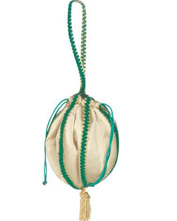 Accessorise your medieval princess or maiden look with this Renaissance Hunter Pouch Bag in cream with tassle and green braid trim. Perfect for your mobile and lippy...not quite what they would have carried in the olden days!