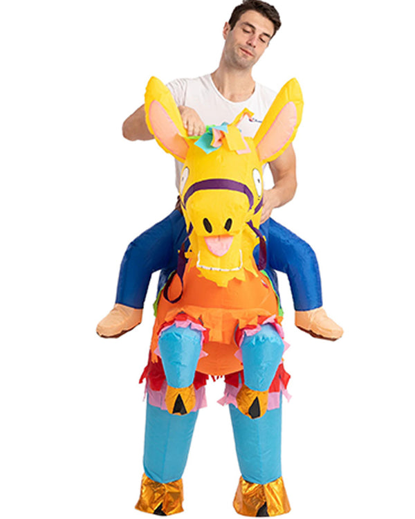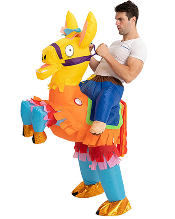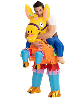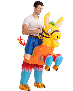 For a hilarious costume idea check out our Riding A Llama Inflatable Adult Costume. Featuring a ride-on Llama costume that looks just like a party Pinata, styled with two inflated forelegs, blue legs hanging off the back of the llama and purple reigns for you to simulate riding a llama! Just slip your legs through the hind legs of the llama, adjust the direction of the fan and tighten the drawstrings for easy inflation.