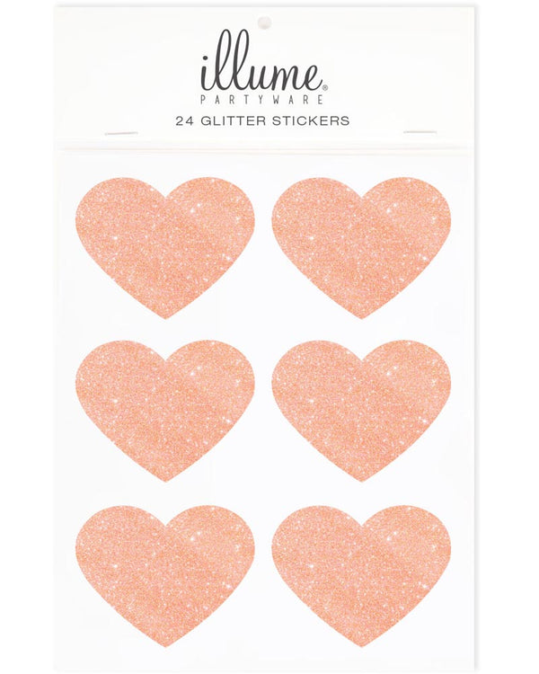 Rose Gold Glitter Heart Sticker Seals Pack of 24