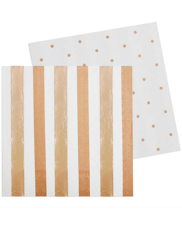 Rose Gold Stripes and Dots Lunch Napkins Pack of 20