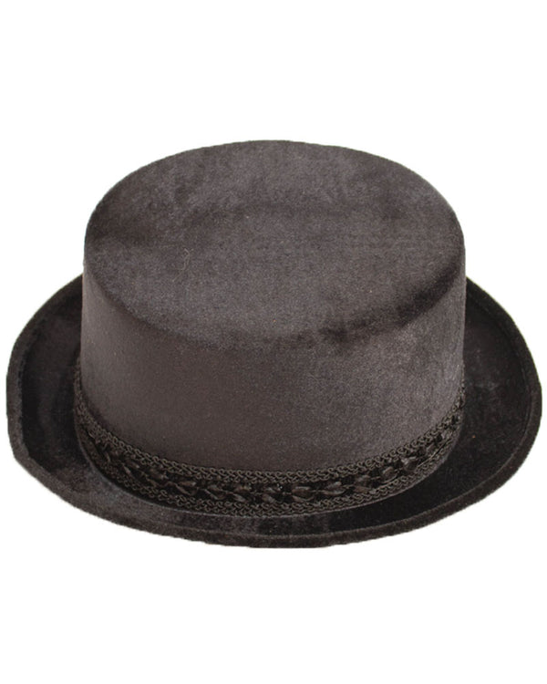 Look smart and sophisticated with this Round Black Velvet Top Hat. This velvet top hat is black and looks great with any historical, burlesque or gentlemen costumes.