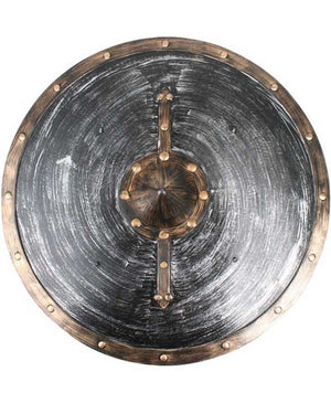 Complete your look with our round lightweight plastic aged Viking Shield measuring 46cm in diameter with a raised cone in the centre. Two arm straps to hold it in place. Would also work for medieval or Roman dress up costumes