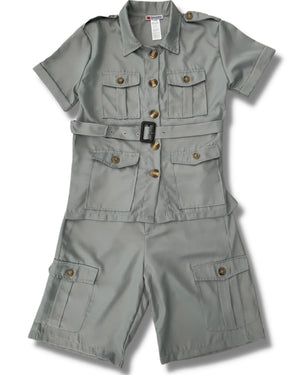 - Dark beige buttoned-up shirt with 4 working pockets and short sleeves for a realistic explorer look.