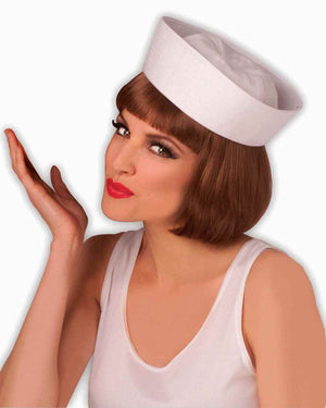 Simple but distinctive white Sailor Hat to complete your seafaring look, white traditional 'gob' style hat.