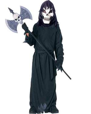 There is nothing humorous about this Scary Skeleton Kids Costume! If scaring people on Halloween is in your bones, then this Halloween costume is just for you! This spine tingling costume includes the mask, hood and robe, waist sash and gloves.