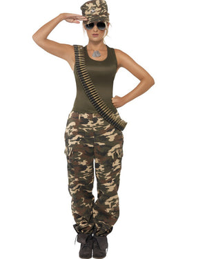 Never give up on the good times with our Scary Spice Womens Costume. Stop right now and get this costume that includes an army green singlet and camouflage patterned pants. Team this up with some aviator sunglasses, dog tags and boots to look ready for action. Don't forget to grab your girlfriends and dress together as the Spice Girls! We know you really, really want to!