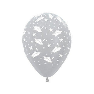 Sempertex 30cm Graduation Hats & Stars Satin Pearl Silver Latex Balloons - 25PK