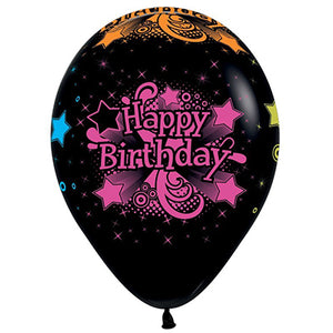 Sempertex 30cm Happy Birthday Fashion Black & Neon Latex Balloons 12PK Pack of 12