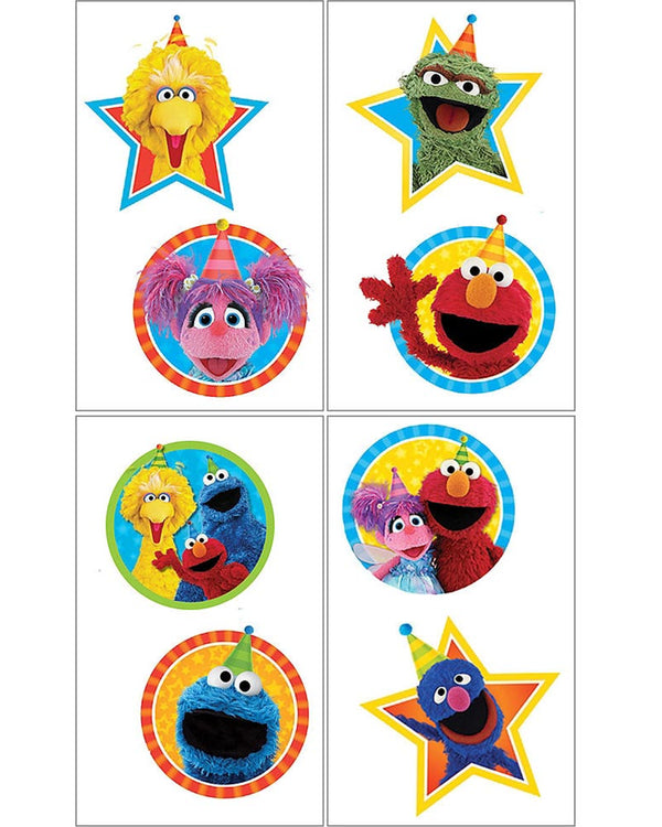 Your child and their friends can take their favourite Sesame Street characters everywhere they go with this Sesame Street Tattoo Favour Pack of 8. The tattoo favours come in a pack of 8 and feature the fun, smiling faces of the Sesame Street characters. Three of the tattoos are star-shaped featuring Big Bird, Grover and Oscar the Grouch, and the other five are circular shaped and feature Elmo, Abby, Big Bird and Cookie Monster. Give these out at the party as prizes or pop them into lolly bags for the guests to take home at the end of the party. Combine with our range of Sesame Street party supplies including party cups, party plates, tablecovers and more.