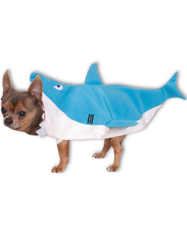 Turn your furry friend into a ferocious fear monger with this Shark Pet Costume. This costume is styled as a blue shark jumpsuit with 3D dorsal fin and tail and has a soft fleece feel so your pup is comfortable. The jumpsuit fastens under your dogs belly.