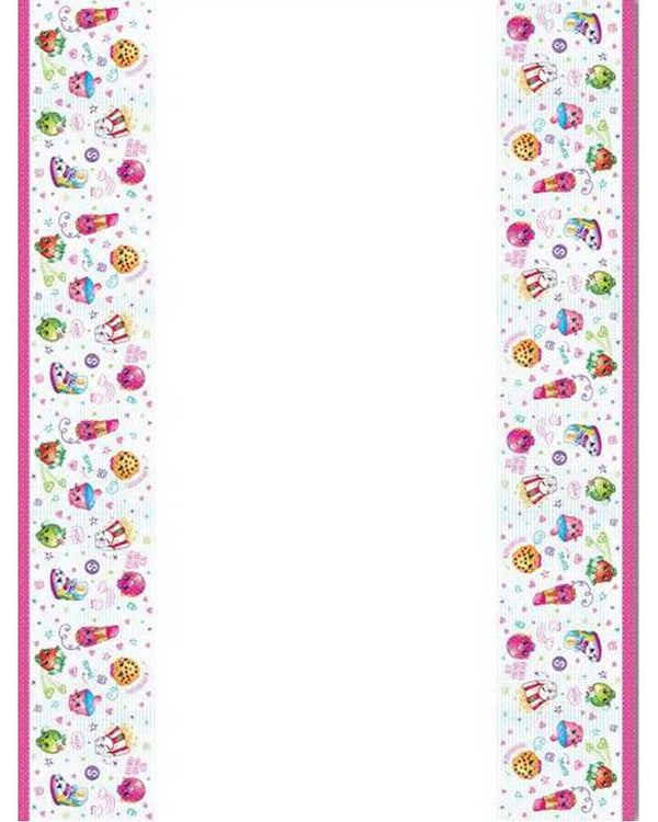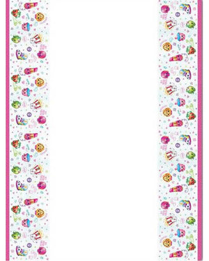There will be no need for a cleanup in aisle 5 with this Shopkins Plastic Tablecover to protect your table from splashes and spills. The tablecover is white with a border design featuring some of the most popular Shopkins characters including Apple Blossom, Cupcake Chic, Poppy Corn, Sneaky Wedge, Kooky Cookie and more.