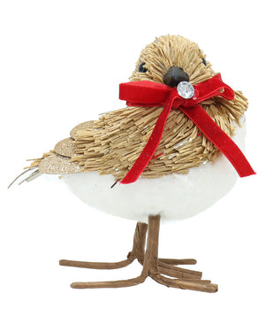 Sisal Bird with Velvet Bow Collar Christmas Decoration 16cm