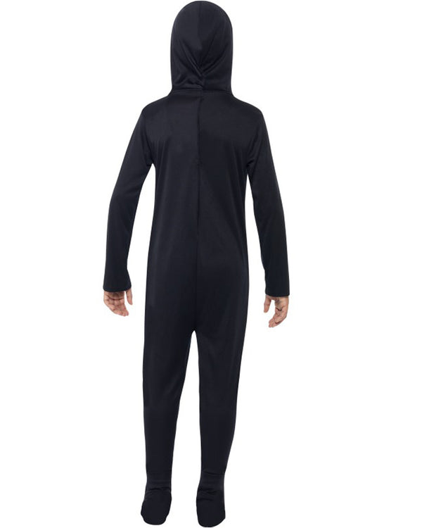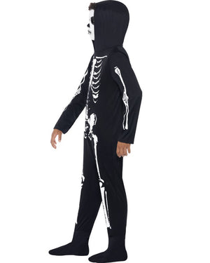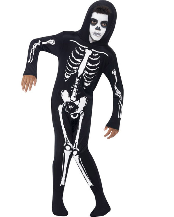 Get dressed up in this Skeleton Onesie Kids Costume and frighten all your friends! This hooded all in one costume is a brilliant idea for Halloween parties just paint your face like our model here.